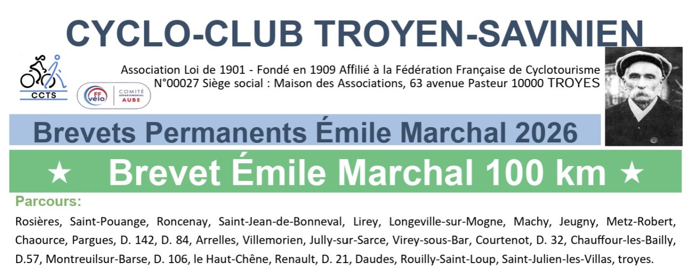 SAMEDI 18/04/2026 BREVET EMIL MARCHAL 100 KM